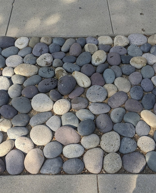 These versatile pebbles can also be used to create contemporary design borders that enhance pathways, flower beds, and outdoor living spaces. Available in sizes ranging from 1/4" to 12 inches, the mixed colors of these pebbles add a dynamic touch to landscaping designs, making them perfect for both residential and commercial projects.